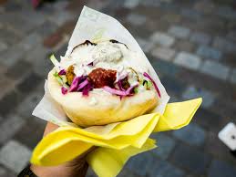 sourced and hand made pita called TAFTAN. Our beef is slow roasted marinated and seasoned with Middle Eastern spices stuffed in a fresh pita topped with tomatoes, cucumber, onions,, lettuce, coleslaw, turnips, drizzled with garlic